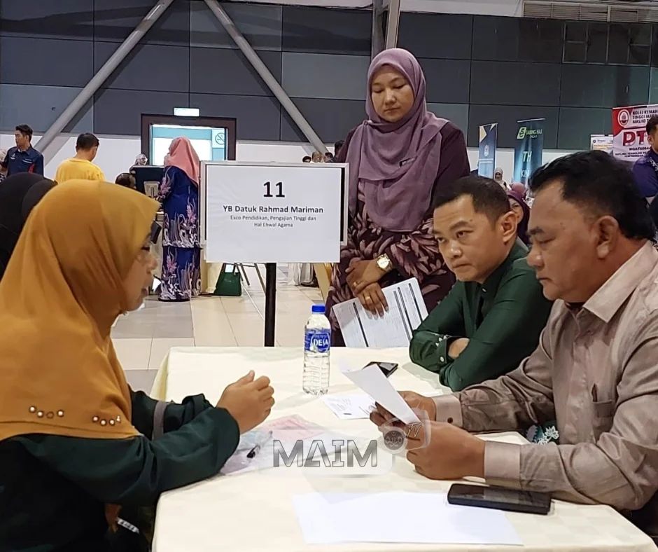 Exco Pendidikan, Pengajian Tinggi dan Hal Ehwal Agama, YB Datuk Rahmad bin Mariman hadir menyantuni mereka yang hadir untuk mendapatkan khidmat nasihat dan pandangan berkaitan keperluan semasa mereka. Hadir sama Setiausaha MAIM, Ybrs Tuan Haji Muhammad Ikram bin Ibrahim.