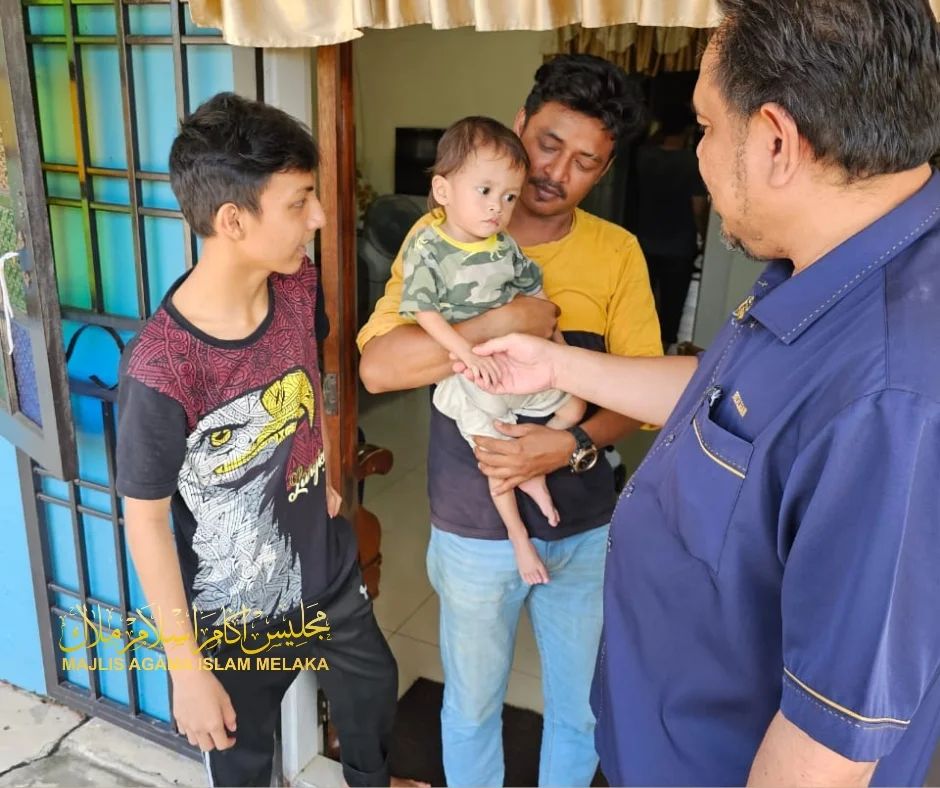 Bersama ADUN Telok Mas, YB Datuk Abd Razak bin Abd Rahman, Skuad Agihan Zakat MAIM (SAZ) Cawangan Melaka Tengah santuni seorang anak kecil, adik Aryan Mikhail bin Muhammad Fuad di Kg. Ujong Pasir hari ini.