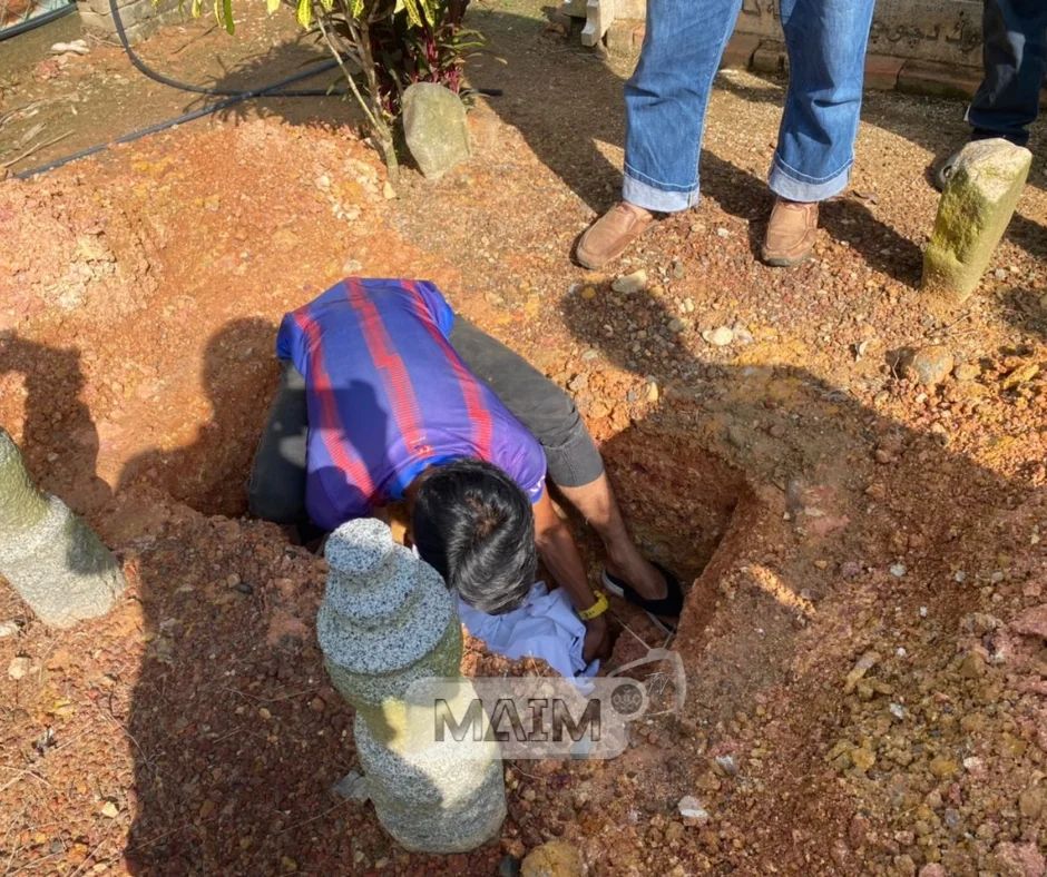 Turut hadir memantau Pegawai Syarak yang bertugas dikawasan berkenaan bagi memastikan proses kerja-kerja pengalihan ini berjalan dengan lancar dan teratur. Pengalihan 2 unit kubur ini telah tempatkan semula ke Tanah Perkuburan Islam Kg Air Tawar, Merlimau dan Tanah Perkuburan Islam Kg Telok Mas. Semoga usaha murni ini dapat diberkati oleh Allah, In Shaa Allah.