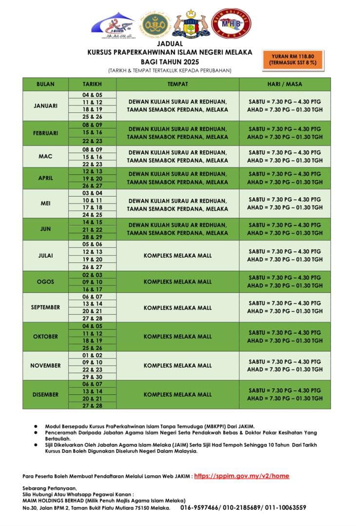 PENDAFTARAN KURSUS PRAPERKAHWINAN ISLAM NEGERI MELAKA 2025