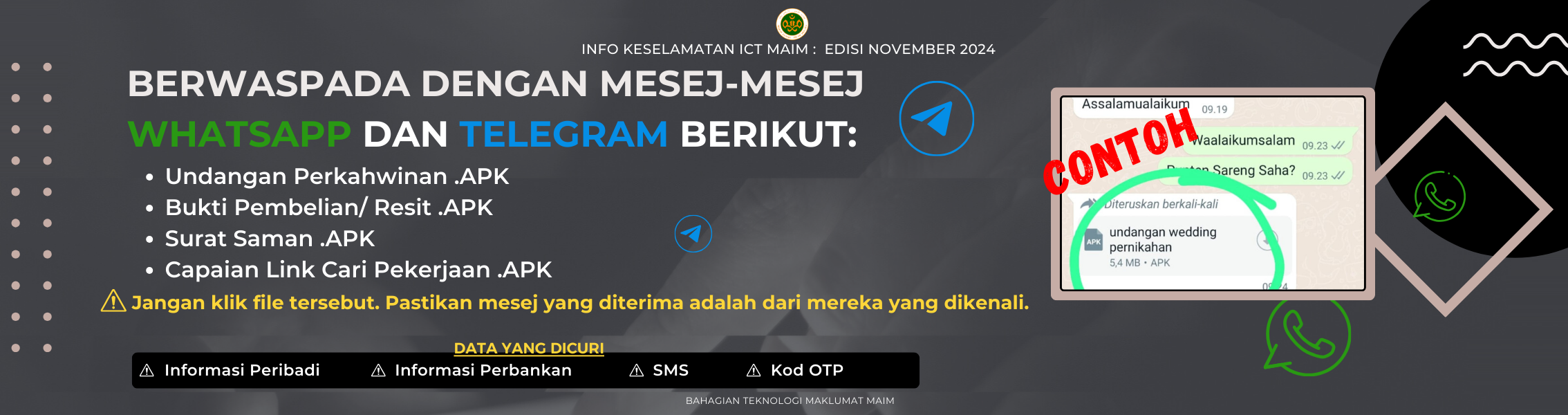 PENAFIAN : Pihak Majlis Agama Islam Melaka (MAIM) tidak akan bertanggungjawab bagi apa-apa kehilangan atau kerugian disebabkan oleh penggunaan mana-mana maklumat yang diperolehi dari laman web ini serta tidak boleh ditafsirkan sebagai ejen kepada ataupun syarikat yang disyorkan oleh MAIM.